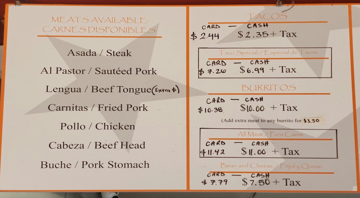 La Estrella Tacos #1 Menu
